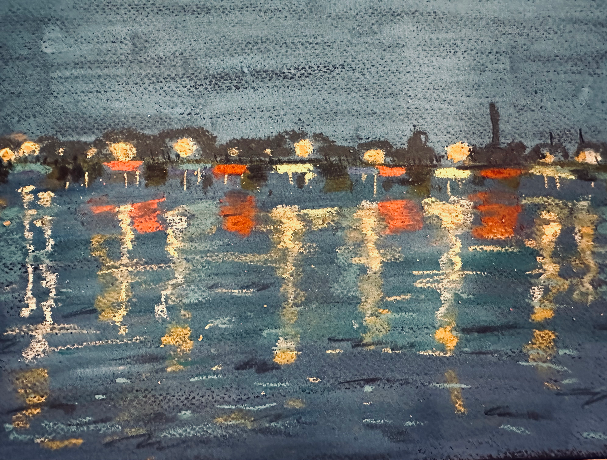 Sabarmati river bridge in my home town was lit up so beautifully which led to an enchanting click and an abstract painting of the same emerged. Sabarmati has huge significance in indian independence as it was where dandi march led by Mahatma Gandhi happened.
