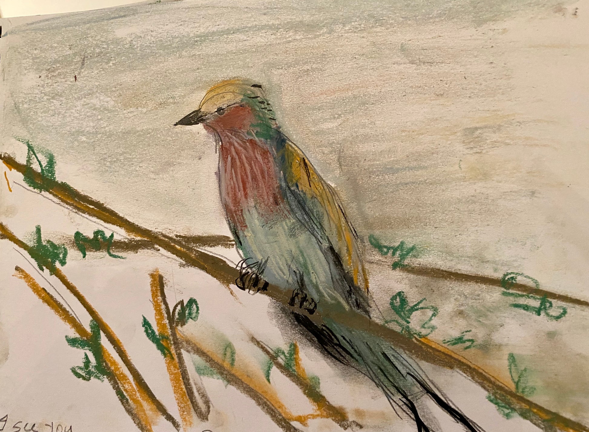 This mixed media painting of roller bird was inspired during my visit to south africa - I was fascinated by this kaleidoscopic single life form embodying so many vivid colors.