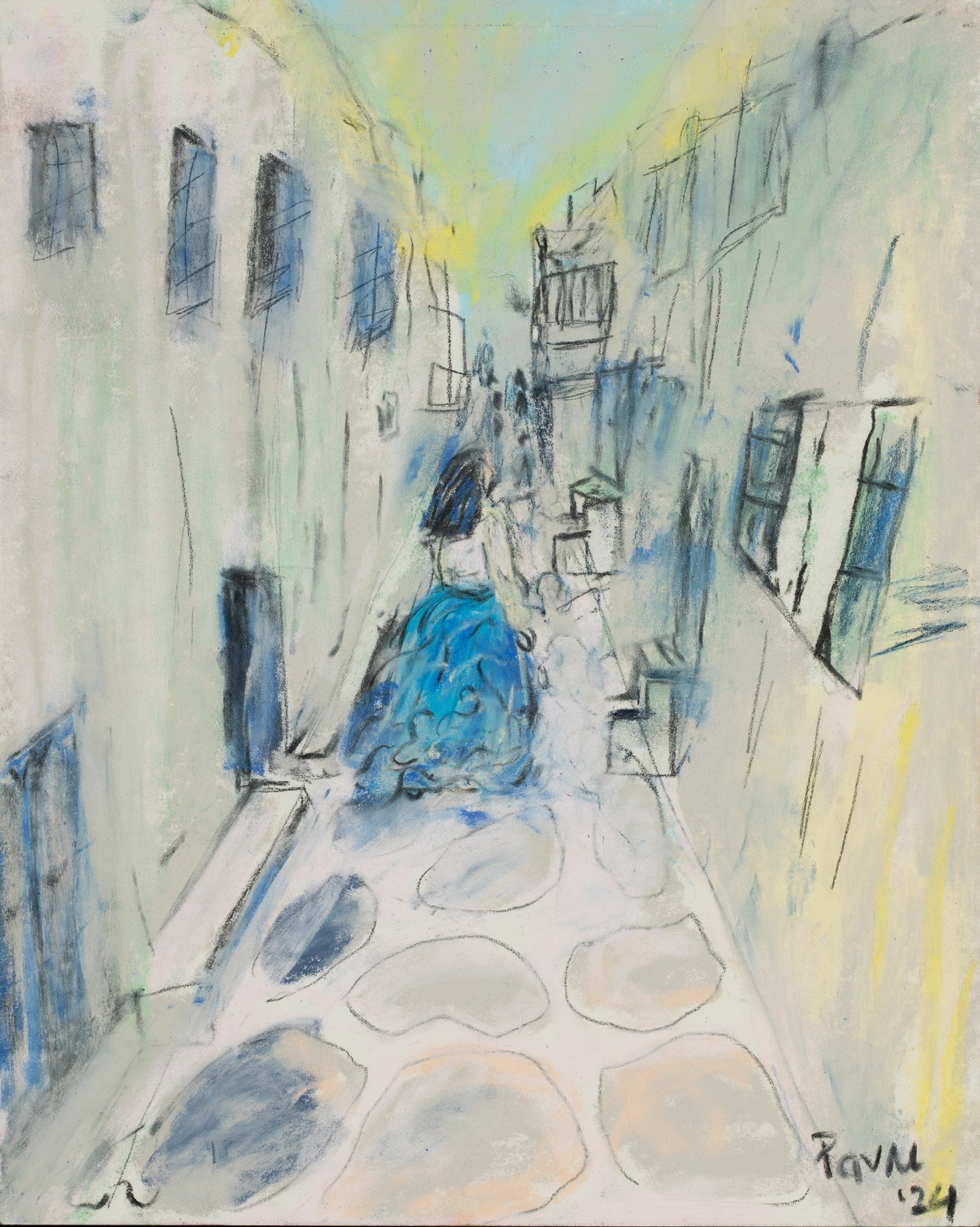 Get lost in the charm and whimsy of a Greek island with Wandering or Lost? Navigate through narrow, tangled streets surrounded by white walls and blue windows. Embrace the adventure (and confusion) of getting lost - or is it just wandering? Either way, I did not want to be found when I did this painting, as part of ebb and flow series, and you won't either.
